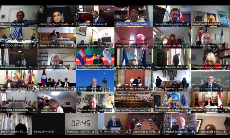 Una delegació del Consell General encapçalada per la Sra. Carine Montaner (Grup Parlamentari Terceravia + Unió Laurediana + Independents) i integrada pel Sr. Marc Magallon (Grup Parlamentari Liberal), la Sra. Núria Rossell (Grup Parlamentari Demòcrata), el Sr. Raül Ferré (Grup Parlamentari Ciutadans Compromesos) i Carles Sánchez (Grup Parlamentari Socialdemòcrata), ha participat a la 46a sessió de l’Assemblea Parlamentària de la Francofonia que degut a la situació d’emergència sanitària causada per la pandèmia del SARS-CoV-2, s’ha realitzat de manera virtual, els dies 19, 21, 26,27, 28 i 29 de gener de 2021.