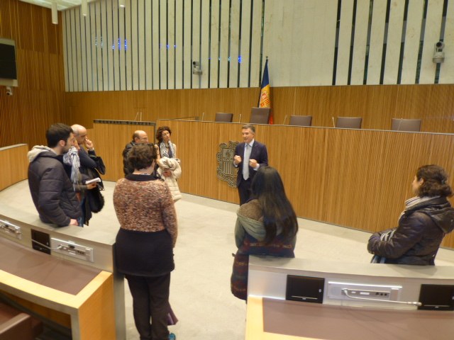Un grup d'alumnes del curs d'Iniciació a les institucions andorranes, ofert per l'Àrea de Formació d'Adults del Ministeri d'Educació i Ensenyament Superior, han visitat el Consell General per aprofundir en el coneixement d'aquesta institució que ben aviat -el 2019- celebrarà el sisè centenari.