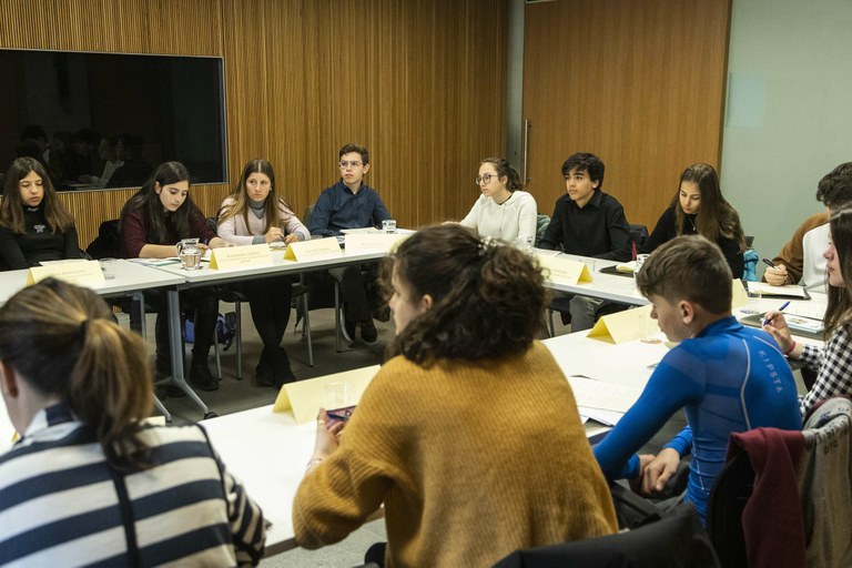 Alumnes de secundària es reuneixen en comissió en el marc del 18è del Consell del Joves