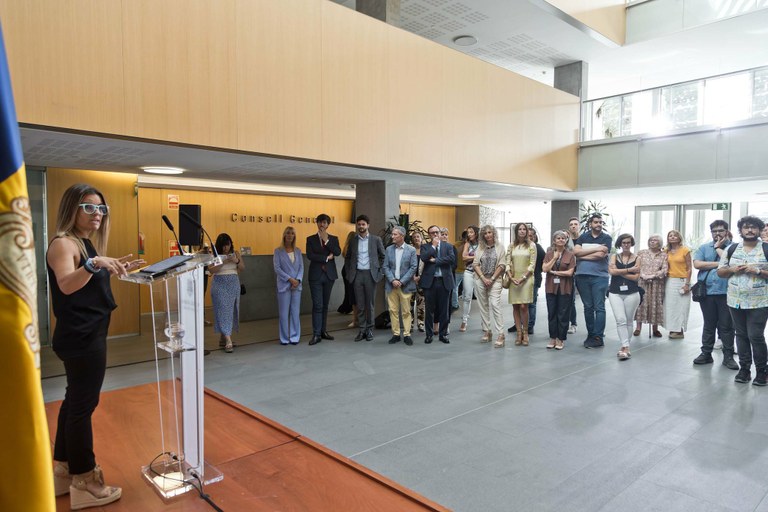 L’acte de presentació celebrat al vestíbul del Consell General ha comptat amb la presència dels nois i noies que han elaborat el cartell, els professionals que els han acompanyat, una àmplia representació dels Grups Parlamentaris i membres de la societat civil.