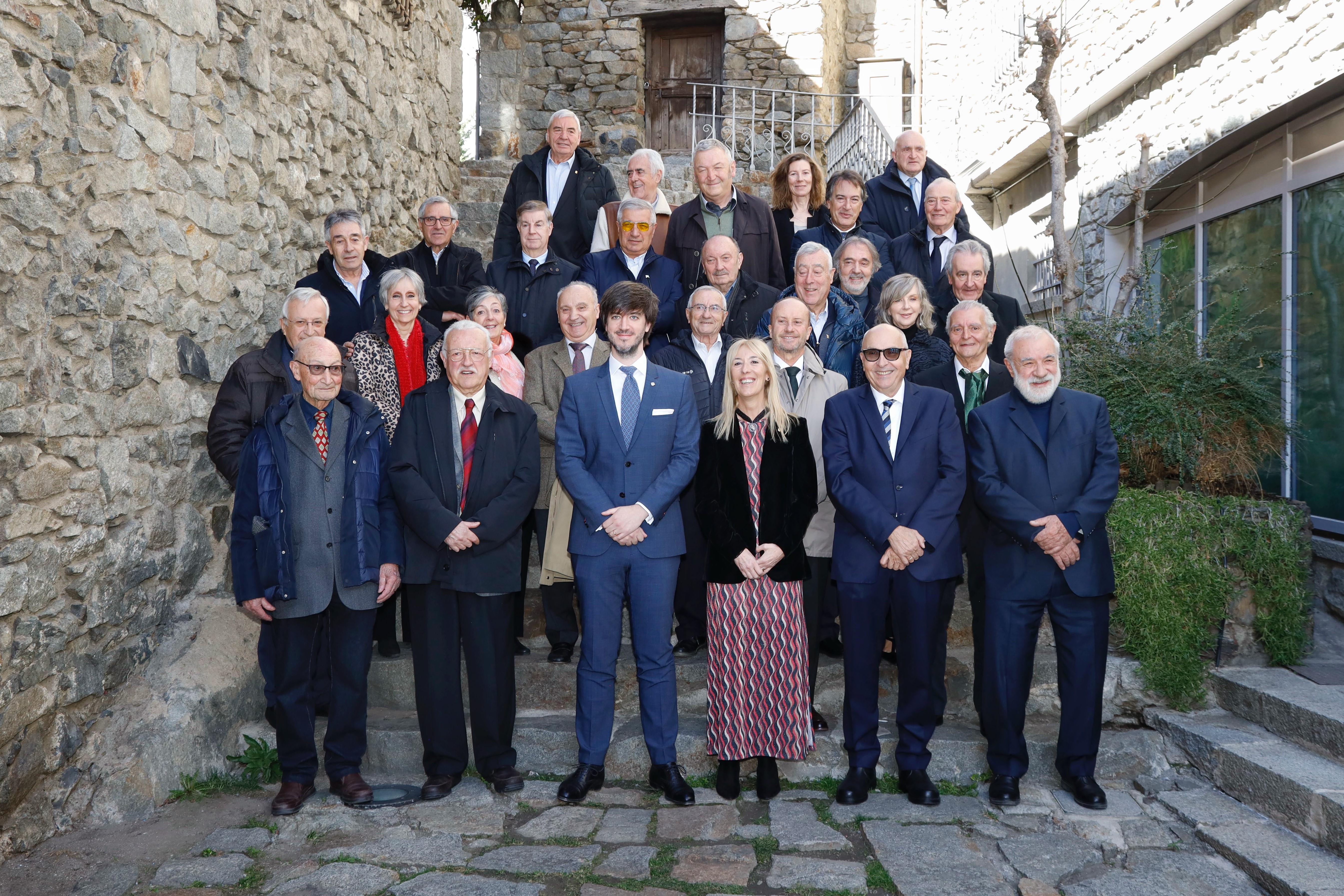 Tradicional foto de família a les escales de Casa de la Vall amb els exsíndics i exconsellers generals del procés constituent.