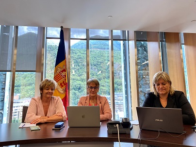 Aquesta tarda, la síndica general, Roser Suñé, acompanyada de la subsíndica general, Meritxell Palmitjavila, i la consellera general, Berna Coma, en representació de la delegació del Consell General a la Unió Interparlamentària (UIP), estan participant al debat que la UIP ha organitzat amb motiu del Dia internacional de la democràcia.