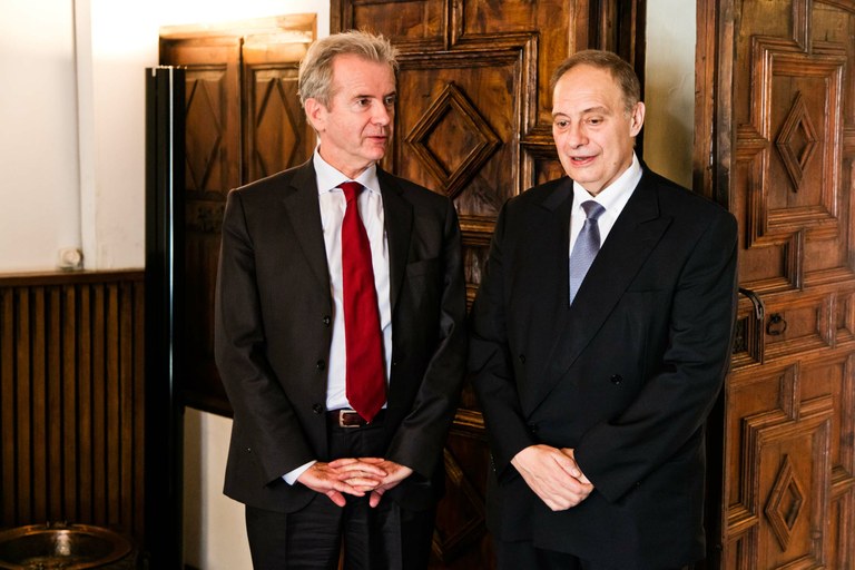El nou representant del Copríncep francès, Jean-Pierre Hugues, ha estat rebut aquest matí pel síndic general, Vicenç Mateu, qui li ha lliurat la medalla d'autoritat. Després d'una primera reunió a porta tancada, el síndic general ha acompanyat Hugues en una visita tant al nou hemicicle com a la Casa de la Vall. El representant del Copríncep francès ha estat convidat a signar el llibre d'honor del Consell General.