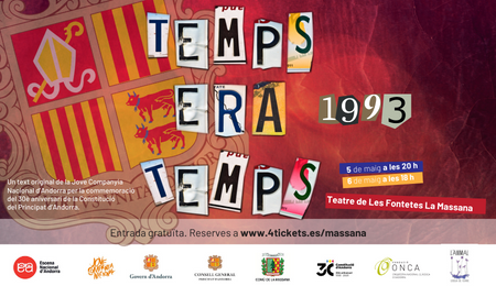 "Temps era temps... 1993" és una obra que sintetitza més de set-cents anys d'història andorrana en un format jove, accessible i una mica trapella. Amb un elenc de dos actors, dues actrius i un músic, la JOCAND ha aconseguit transmetre la passió i talent a través d'una narrativa teatral que captivarà a l'audiència.