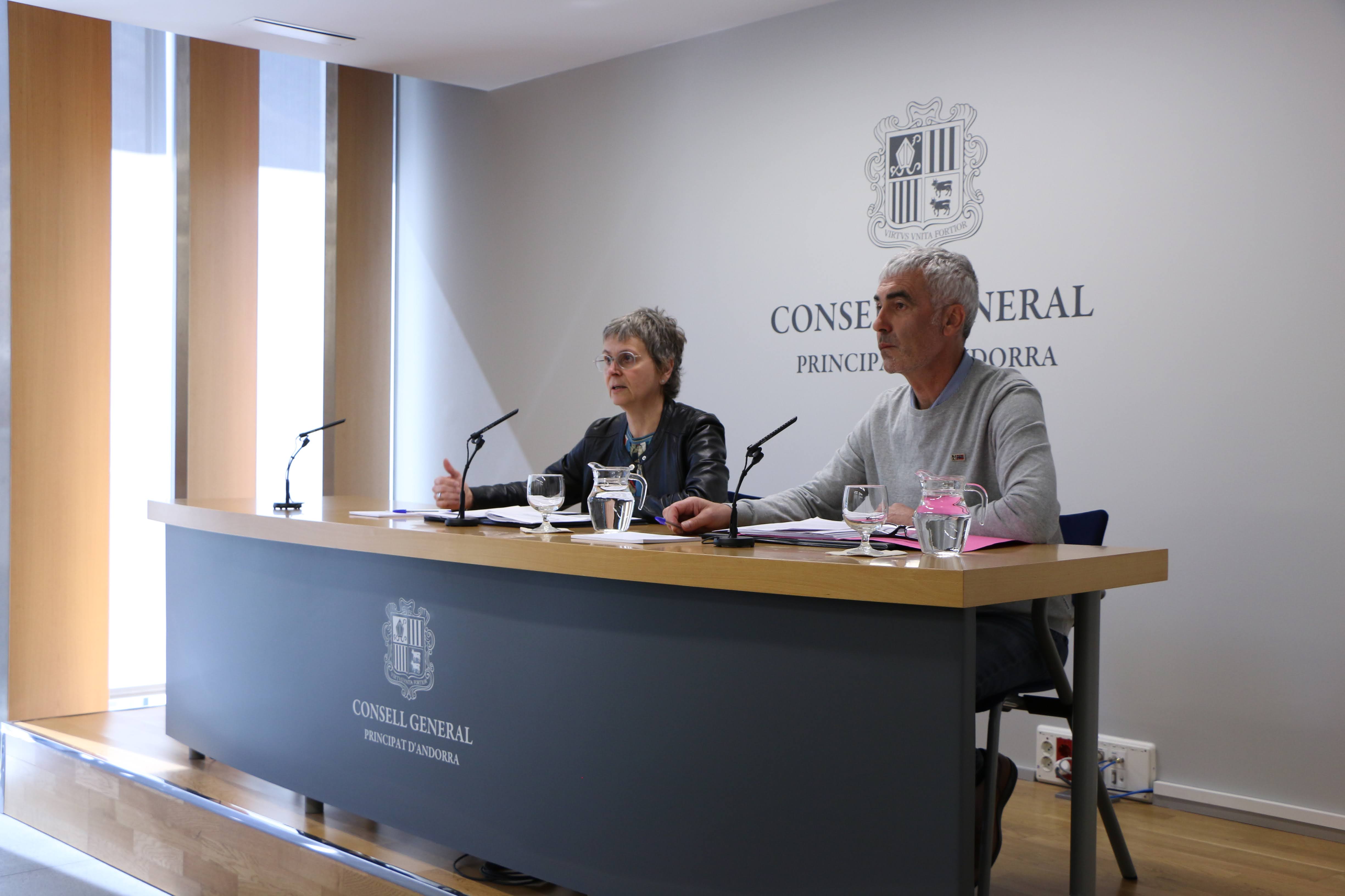 Susanna Vela i Marc Magallon presentant les millores del Premi Principat d'Andorra d'investigació històrica. (Abril 2024)