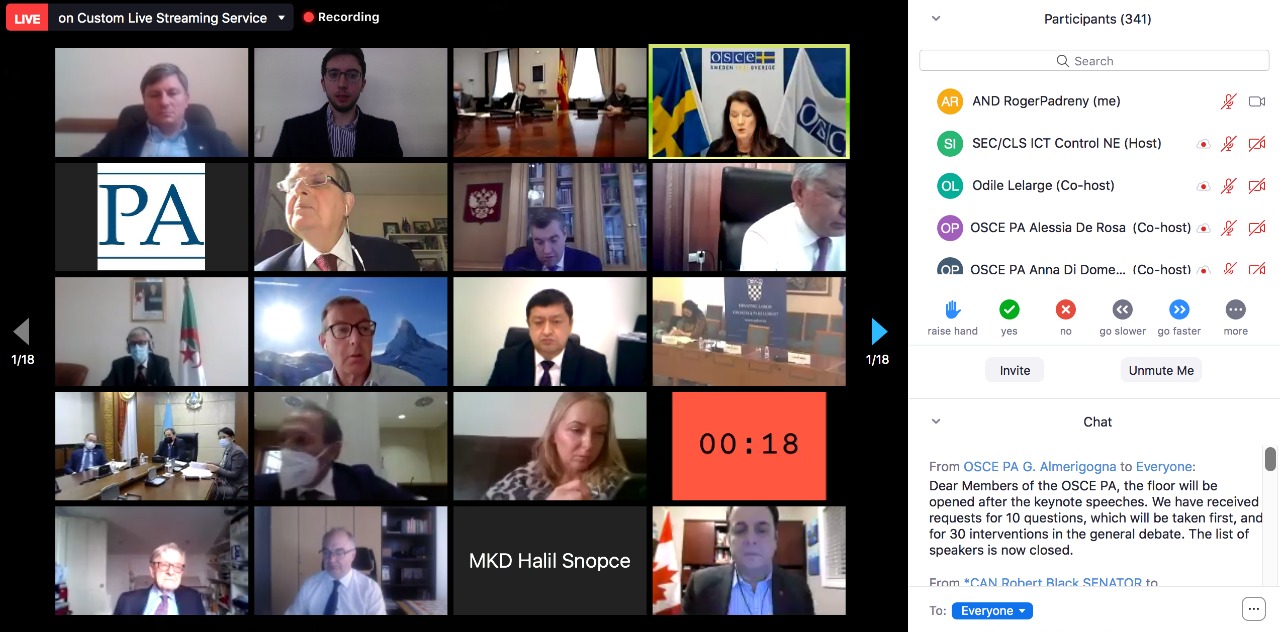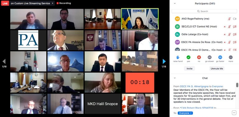 Després de la Sessió inaugural ha tingut lloc la reunió de la Comissió d’afers polítics i de seguretat, presidida per Richard Hudson (USA), on s’han presentat les línies generals que contindrà la resolució que aquesta comissió aprovarà durant la Sessió anual que tindrà lloc també de manera virtual el proper mes de juliol.