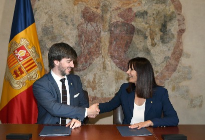 El síndic general, Carles Ensenyat, i la ministra de Cultura, Joventut i Esports, Mònica Bonell, han signat aquest dilluns a la tarda a Casa de la Vall un conveni de col·laboració que permetrà al Consell General editar un llibre amb la cronologia de tots els síndics, subsíndics i consellers generals que han passat per la institució des de la seva creació, incloent-hi l’època del Consell de la Terra.
