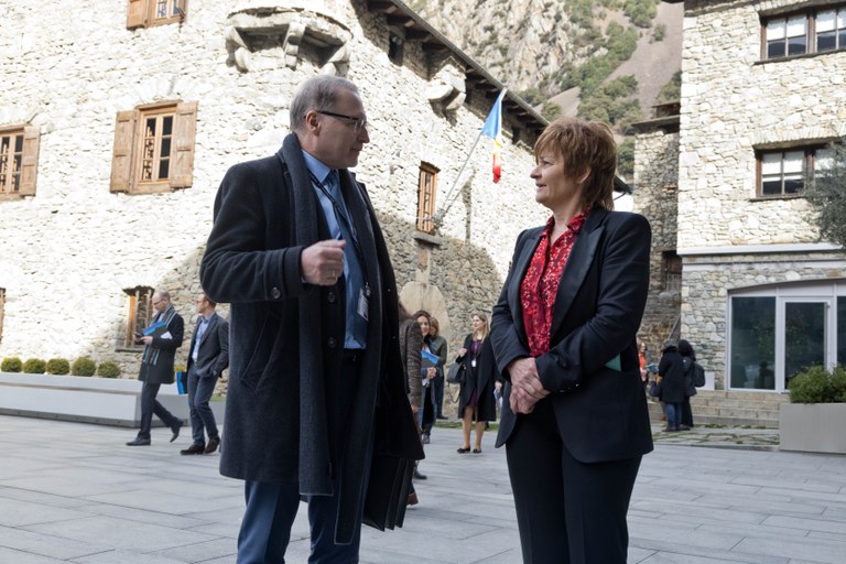 A primera hora la síndica general, Roser Suñé, i la subsíndica general, Meritxell Palmitjavila, han rebut els membres d’aquest grup i els han acompanyat a una visita guiada de Casa de la Vall i l’hemicicle del nou edifici del Consell General on se’ls ha explicat la història institucional andorrana.